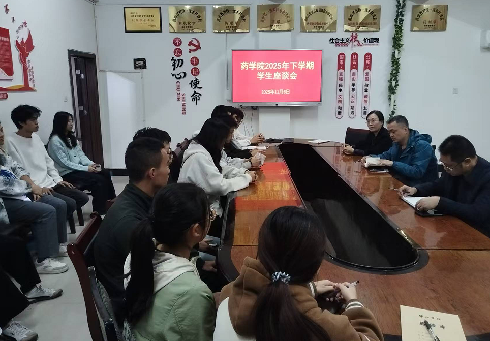 为深入贯彻“以学生为本”的育人理念,搭建学院与学生之间高效沟通的桥梁,广泛听取学生对学院教育教学、管理服务等方面的意见和建议,我院于2025年11月6日17点在二办401成功召开了2025年下学期学生座谈会。药学院副院长曾立、李成舰,党总支副书记肖丽群出席了座谈会。