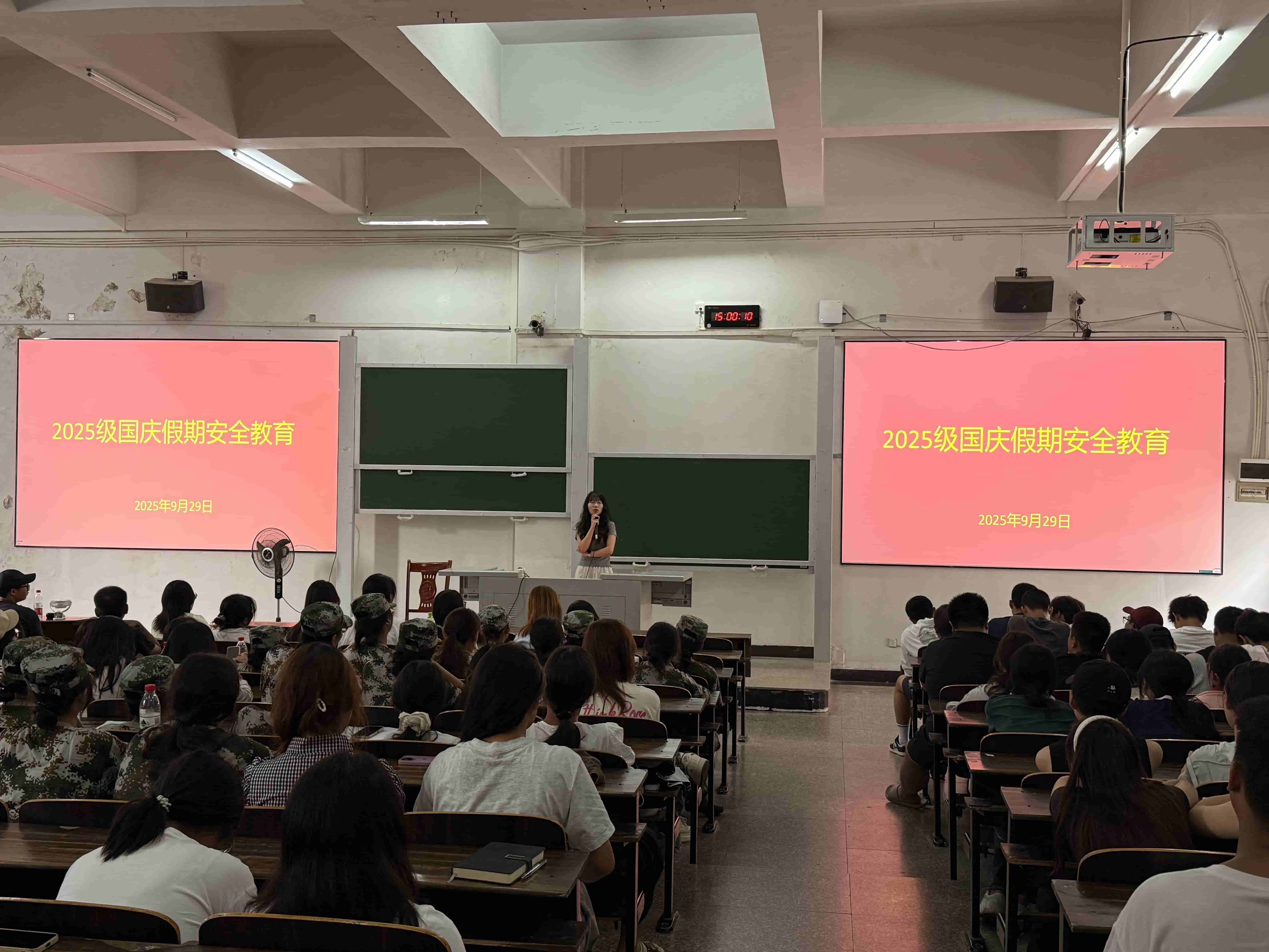 为切实强化药学院全体学子的国庆假期安全防范意识,保障每位同学度过平安祥和、充实愉快的假期,2025年9月25日,药学院组织各年级、各班级集中召开“国庆安全”主题班会。