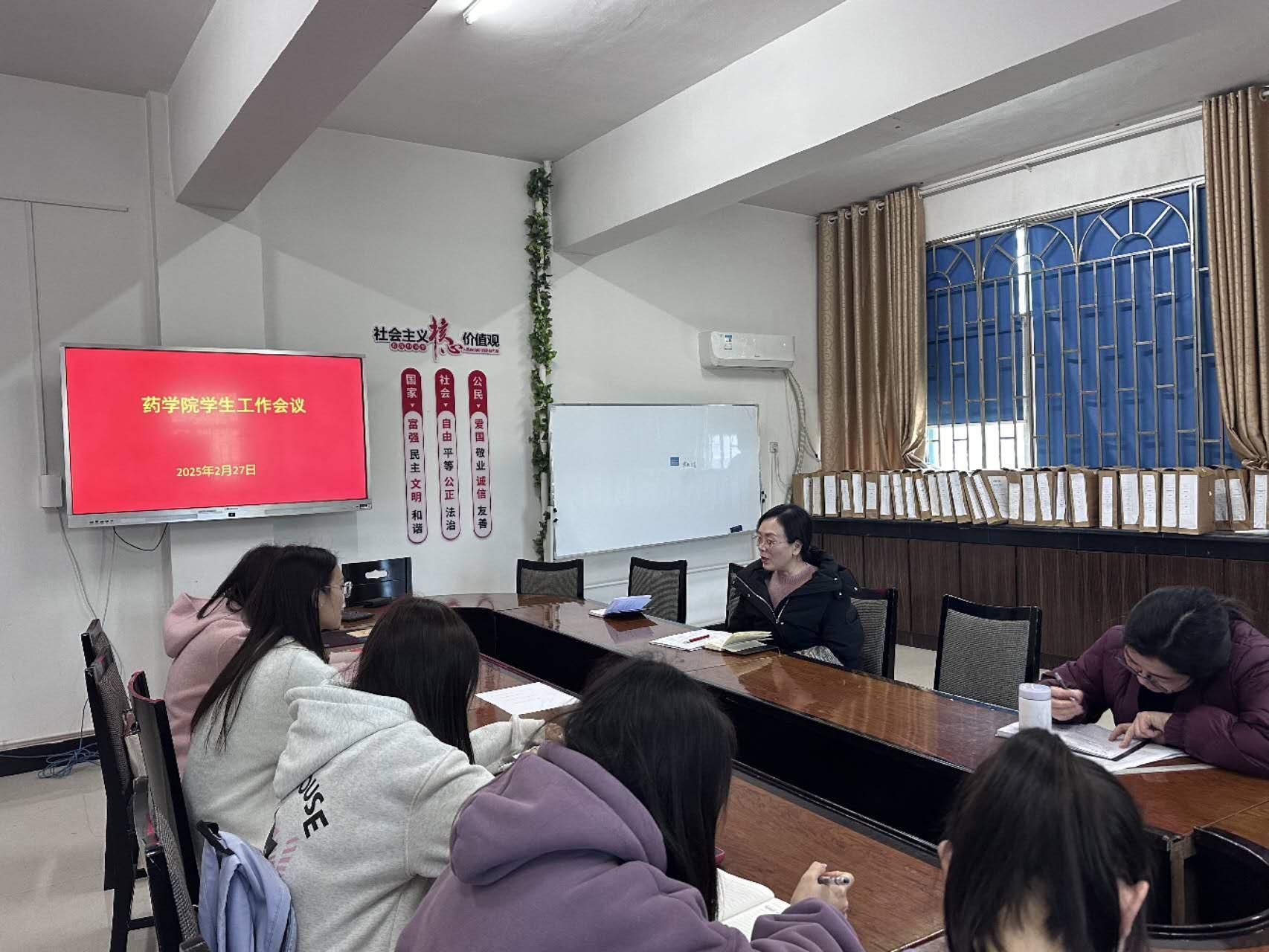 2025年10月13日,为全面贯彻立德树人根本任务,持续推进学院党建引领团学工作走深走实,药学院共青团学生思想政治工作汇报会在二办401召开。会议由肖丽群书记主持,各年级辅导员及团学组织主席团成员参加。