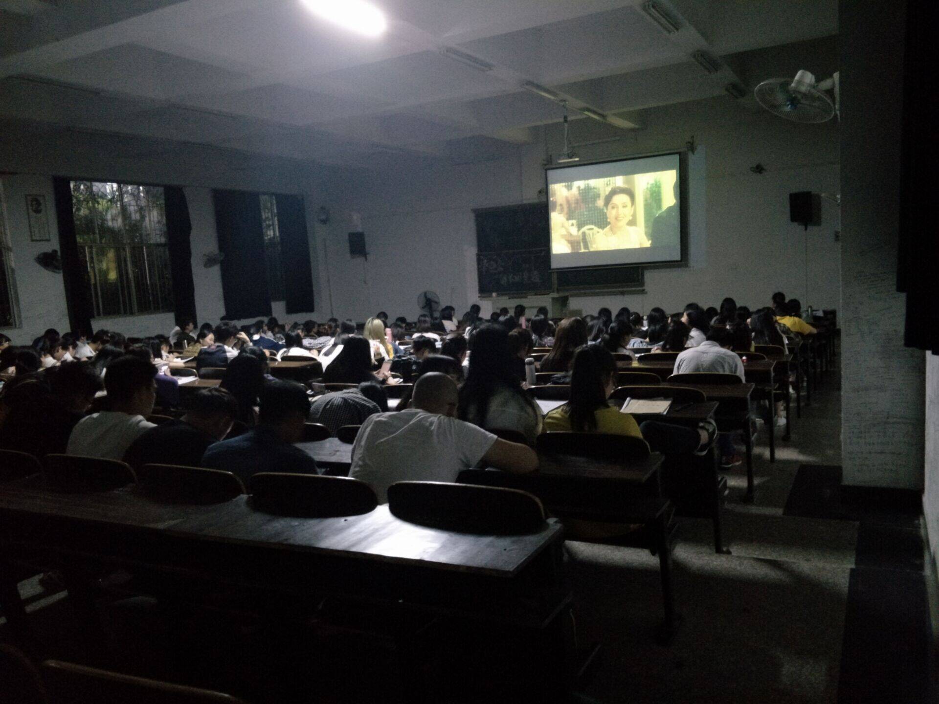 图为同学们观影《美丽人生》现场