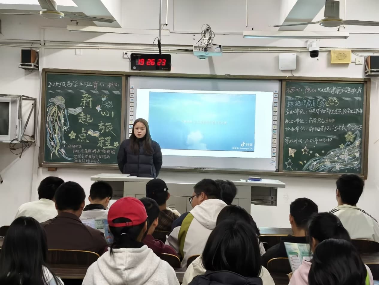 为引导 2025 级新生树立积极健康的心理观念,悦纳自我、适应新的学习生活,10 月 19日至 26 日,药学院以 “新起点,心旅程” 为主题,组织全体 25 级新生开展心理健康主题班会活动。本次活动由中共邵阳学院委员会学生工作部主办,药学院心理健康教育互助部承办,邵阳学院 “一站式” 学生社区协办,旨在通过丰富多样的互动形式,传递心理健康知识,筑牢新生心理防线。