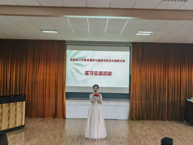 2020年9月28日,在这丹桂飘香的金秋季节,邵阳学院音乐舞蹈学院匡院长、钟华老师、金琳老师以及罗慧娴老师带领着2020届46个实习生来到了人文底蕴深厚,艺术氛围浓郁的湖南省重点中学——邵阳市第二中学开展了“邵阳市二中教育集团与邵阳学院音乐舞蹈学院实习交流活动”。邵阳市第二中学的领导、老师们为实习生提供了良好的学习机会与实践平台。