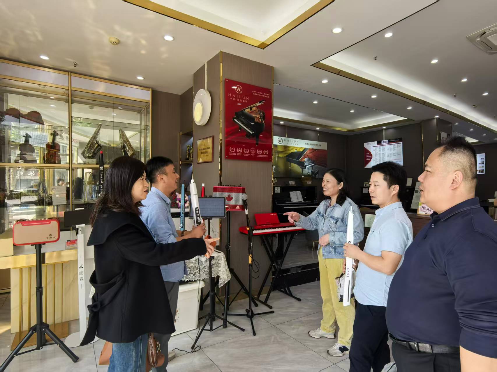 三人先后考察企业教学场地、课程体系及运营模式,深入了解行业发展趋势与人才需求标准。在武汉东方钧天永乐艺术学校,双方围绕舞蹈编导、音乐教培等专业方向展开交流,企业方提出对应用型艺术人才“实践能力突出、创新意识强”的期待,并希望与学院共建实习实训基地。恩施美仕福山琴行负责人则分享了区域性艺术教育市场的需求特点,建议学院优化课程设置,加强学生民族音乐与现代艺术融合能力的培养。