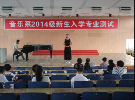 9月25日下午,音乐系开展2014年新生入学专业复核工作。复核分声乐、器乐、钢琴、舞蹈四个专业进行测试,声乐专业185人,器乐专业21人,钢琴专业8人,舞蹈专业42人。新同学们准备充分,在测试复核中不断有精彩节目上演,反映了新生良好的专业素质。