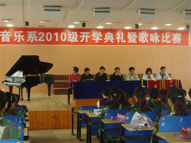 9月26日下午,音乐系在五楼多功能厅召开2010级开学典礼暨迎新合唱比赛,副院长曾宝成教授、系领导、教师与2010级283名新生一道出席了此次活动。