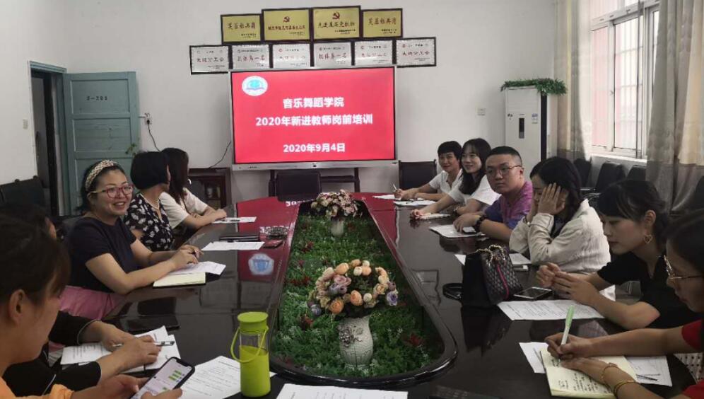 2020 年9月4日,音乐舞蹈学院专家团队在5栋205会议室对今年新进的肖禹康、罗惠娴两位老师进行教学岗前培训。