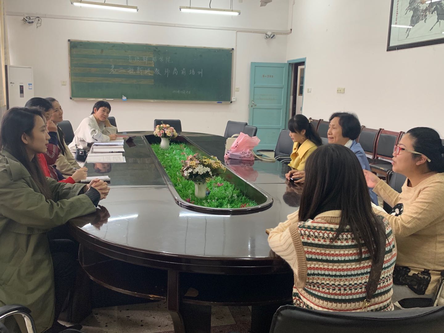 2020 年10月15日,我院在5栋205会议室对今年第二批新进舞蹈和钢琴教师进行了教学岗前培训。培训中,请教学认真负责、经验丰富的教研室主任谢秋菊副教授就备课、授课、教学档案等内容进行了介绍。通过培训,新老师收获挺大,表示一定要向有经验的老师学习,以积极饱满的热情投入到教学中去,尽快转换角色,完成教学任务。