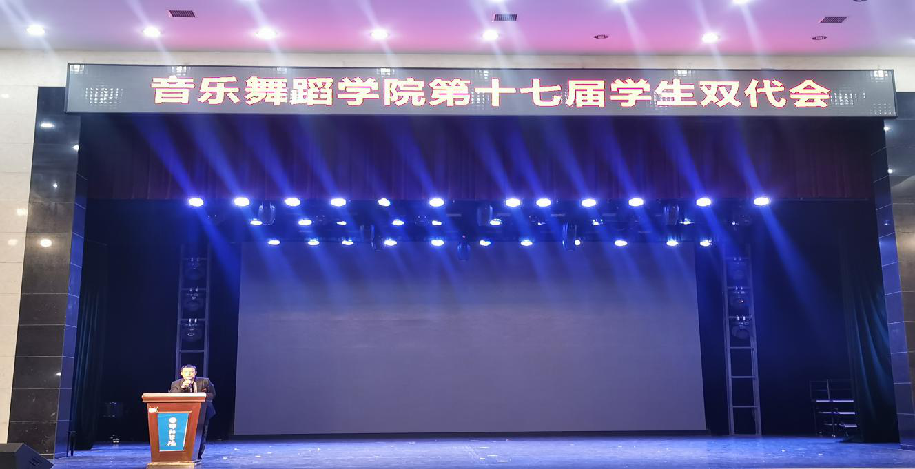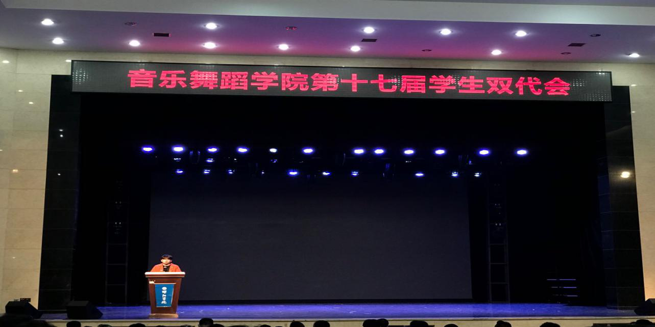 音乐舞蹈学院第十七届学生双代于10月20日中午在星光剧院召开。音乐舞蹈学院刘长爱书记,辅导员傅聪老师、刘旭老师、卜宇芳老师,团总支学生会全体干部干事参加了会议,此次换届大会由20届团总支副书记吴育武主持。
