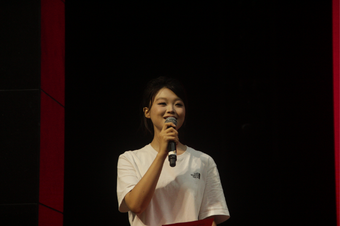 老生代表、2023级音乐学专业杜梦瑶回顾了入校两年来学习和工作的体会,鼓励新生“在舞台中磨砺,在实践中蜕变”。新生代表们表达了对大学生活的憧憬与奋斗不息的决心。