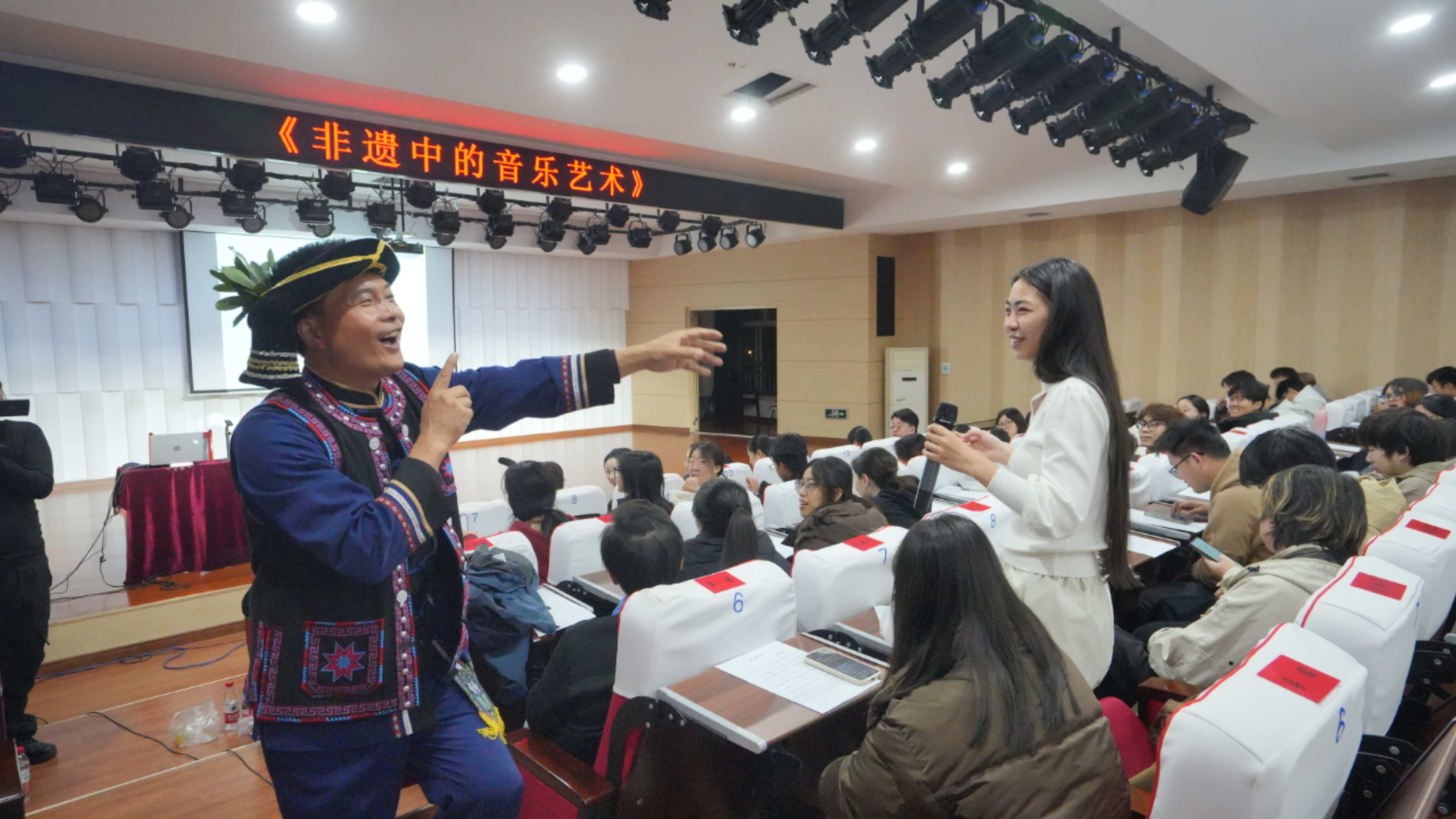 讲座在持久不息的热烈掌声中落下帷幕。许多学生意犹未尽,围在杨昌鑫老师身边继续请教问题,交流感受。一位音乐学专业的学生激动地表示:“以前总觉得非遗离我们很遥远,是博物馆里的陈列。但今天,我不仅听到了如此美妙的音乐,还亲手尝试了,感觉历史和文化一下子就‘活’了过来。这太神奇了!”