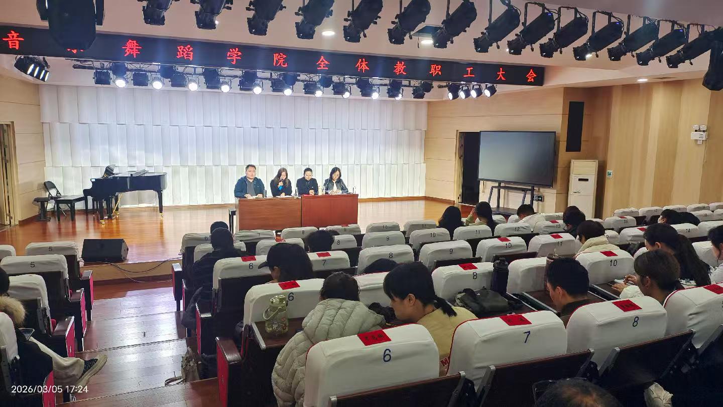 开学初,音乐舞蹈学院召开2026年春季学期第一次教职工大会,围绕"十五五"规划开局之年的重点任务,系统部署新学期工作。会议由党总支书记赵莉主持,全院教职工齐聚一堂,共谋发展新篇章。