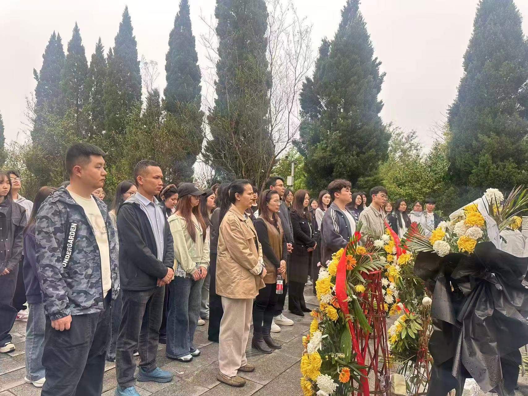 上午9时许,全体师生在革命烈士纪念碑前庄严肃立,祭奠活动在雄壮的国歌声中正式开始。伴随着激昂的旋律,师生们昂首肃立,向为民族独立、人民解放和国家富强而英勇献身的革命先烈致以崇高敬意。国歌奏毕,全场肃立默哀,深切追思革命先辈的不朽功勋。在庄重的献花曲中,师生代表向革命烈士纪念碑敬献花篮,全体人员行三鞠躬礼,寄托绵绵哀思,感悟革命先辈以身许国的赤诚担当。