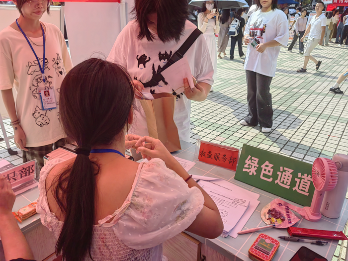 在迎新阶段,我院开设了专门的“绿色通道”,安排学生干部轮班制工作,立即收集新生的助学贷款回执单,耐心回答新生的疑问,尽力为家庭经济困难新生提供服务,帮助家庭经济困难学生顺利入学,开启大学新征程。同时老师和志愿者现场答疑讲解国家、学校资助政策,确保每位学生不因经济困难原因失学退学。
