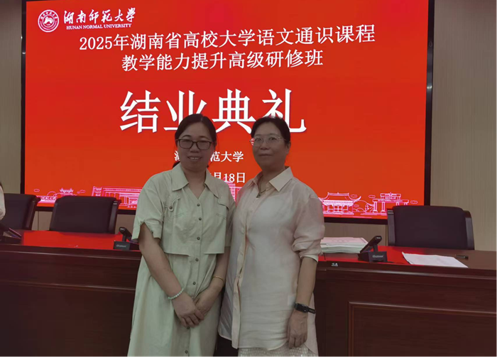 7月13日—18日,2025年湖南省高校大学语文通识课程教学能力提升高级研修班在长沙开班,此次研修班由湖南省高等学校师资培训中心主办,湖南师范大学文学院承办。全省各高校120余名专任教师参加研修班学习,我院陈红玲教授、刘海平老师应邀参加。