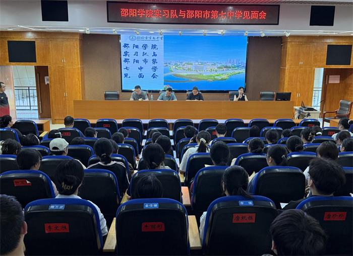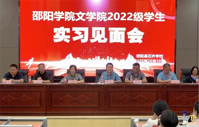 2025年10月10日,邵阳学院文学院与邵阳市七中、邵阳市十三中、邵阳县石齐学校相关领导、指导教师及全体实习生在各实习学校多功能会议室联合召开实习见面会。见面会围绕“携手聚力传薪火,师道传承共成长”的主题部署实习工作,拉开文学院2022级汉语言文学、历史学、汉语国际教育3个师范专业教育实习工作序幕。