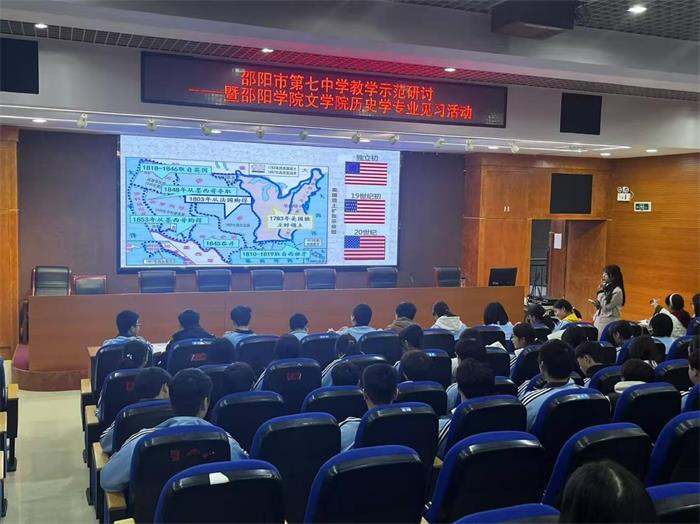 为了加强对教育家理论及精神的理解,加深与中学教育的联系,增强学生的教育教学能力,培养教书育人的精神内涵,2025年11月3日,在王琦老师的带领下,文学院23级历史专业的同学赴邵阳市七中开展教育见习活动。本次见习活动中,先后聆听了唐倩老师的初中历史示范课和王娟老师作为班主任的心得分享。