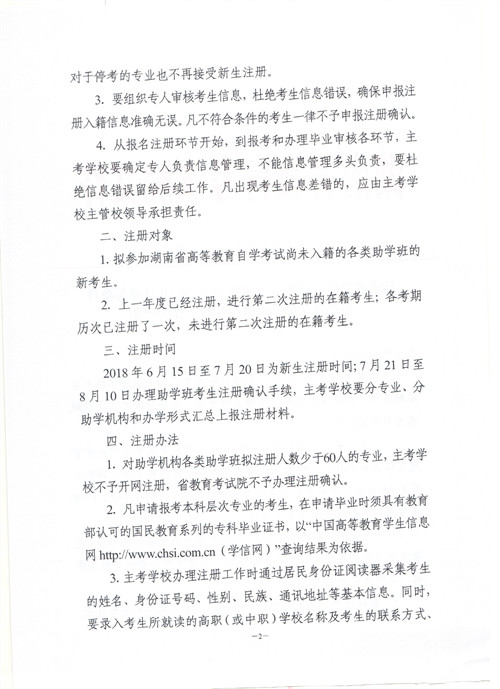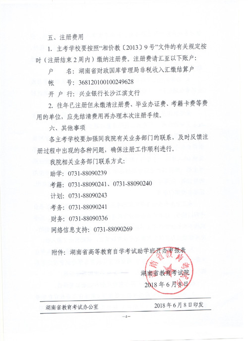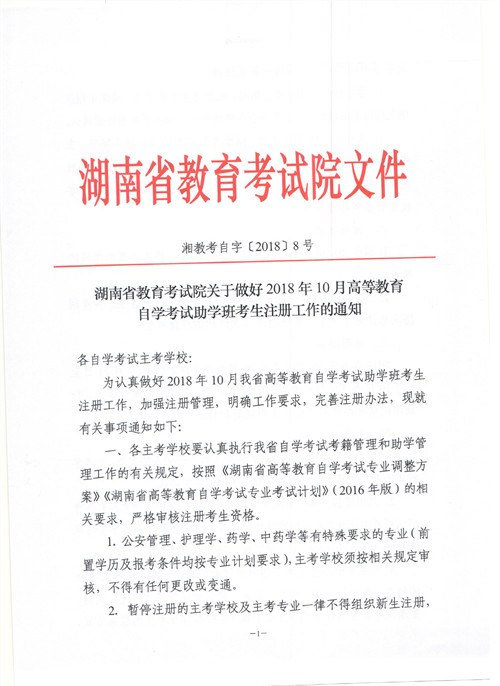 湖南省教育考试院关于做好2018年10月高等教育自学考试助学班考生注册工作的通知