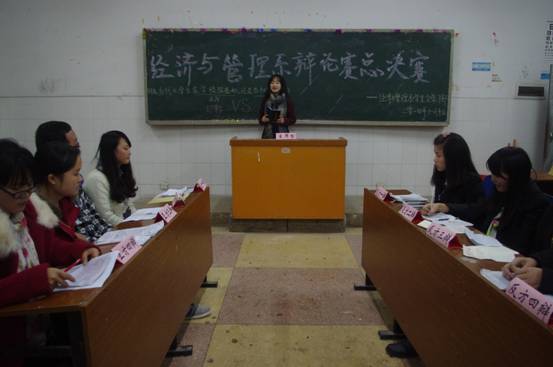 2014年11月10日晚上8点,经济与管理系举行的辩题为“当代大学生在学校深造好,还是在社会深造好”的辩论赛总决赛在教学楼北316教室圆满落幕。