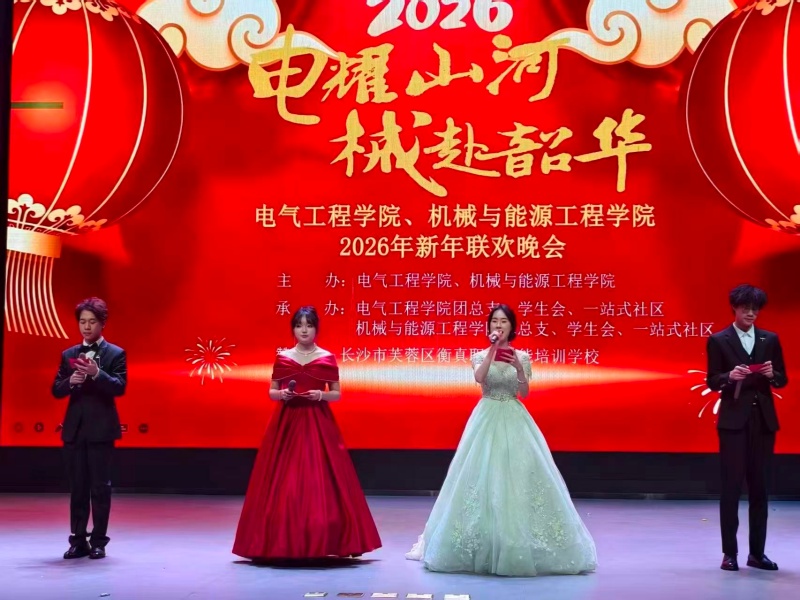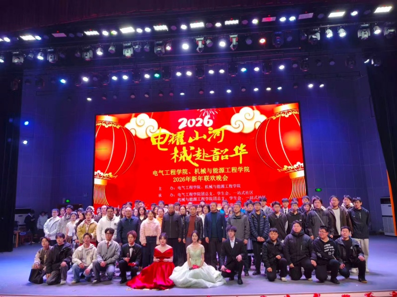 1月7日晚,机械与能源工程学院联合电气工程学院举办的2026年“电耀山河,械赴韶华”新年联欢晚会在逸夫楼报告厅温情开演,两院师生齐聚一堂,共赴这场视听盛宴。
