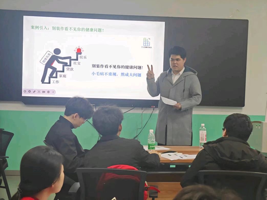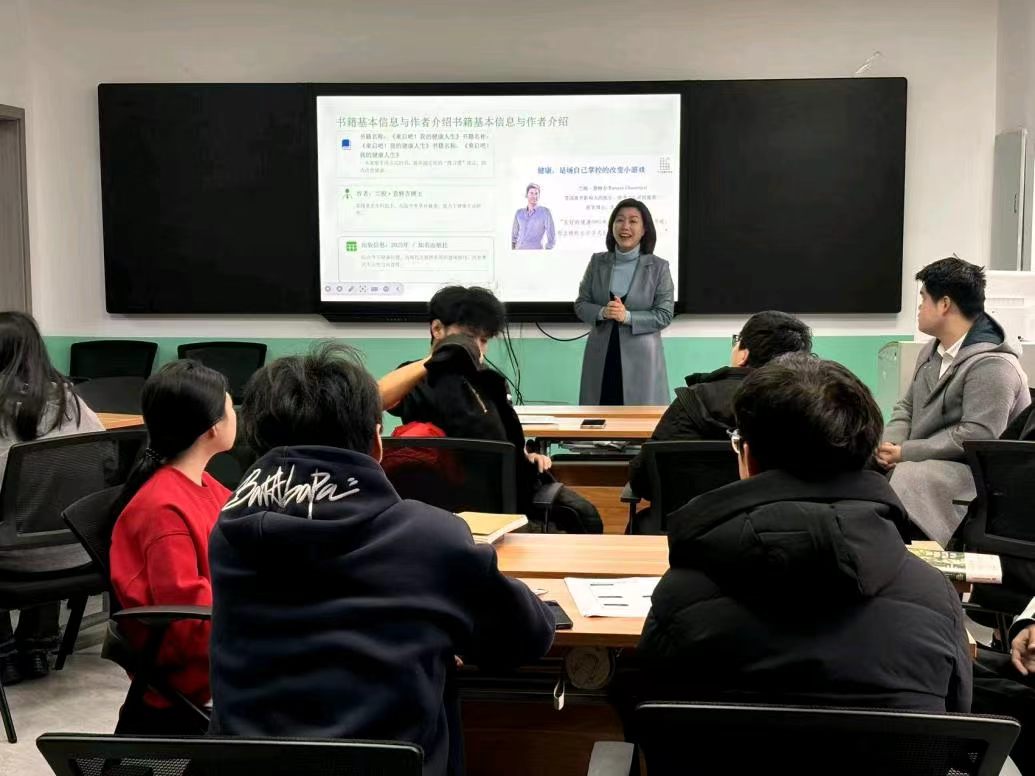 为引导医学生关注个人身心健康,树立科学健康生活理念,将健康习惯融入医学学习与未来职业实践,2026年3月26日,普爱医学院“一站式”学生社区驿站特色活动——《重启吧!我的健康人生》读书分享会在基础医学楼110顺利开展。本次活动以“微习塑健康,躬身践医心”为主题,由院党总支副书记贺朝霞主讲,“健康+”协会读书实践部部长楚童主持,学院辅导员及部分医学生代表共同参与。