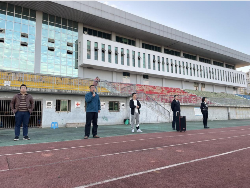 紧接着,体育学院党总支副书记副院长姜俊做升旗仪式总结以及工作指导发言,他提出以下几点要求:一、做好疫情防控工作。非必要不离校,时刻关注健康码、行程码,一旦有变码情况,及时上报;二、换季降温,注意添加衣物,预防感冒,同时也要注意用电安全,禁止在寝室使用大功率电器,避免火灾发生;三、做好喜迎二十大工作,同学们要树立正确的价值观,积极响应党的号召,有任何想法及意见同年级辅导员联系。