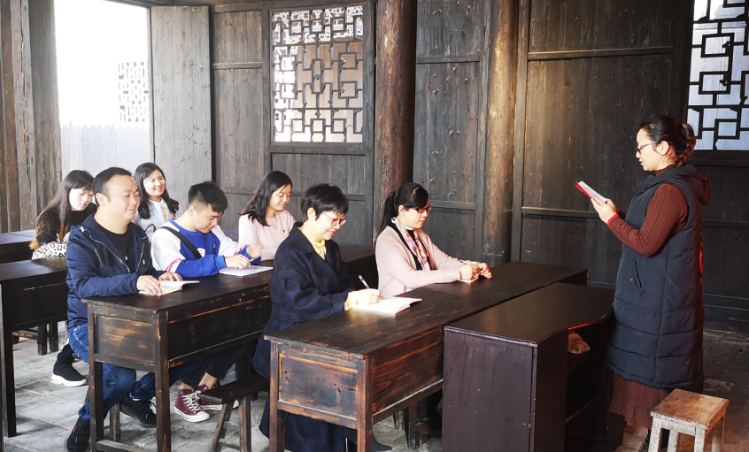 进入塘田战时讲学院,首先是国际学院党总支宣传委员刘英同志,以讲课的方式带领全体党员重温入党誓词,庄严宣誓,并谈论自己的所见与所感。接着是参观塘田战时讲学院旧址,全体党员严肃、认真、活泼地参观了一个多小时的“讲学院”,追溯革命先辈的足迹,泓扬伟大长征精神和学习党的伟大历史,牢记党的宗旨的党性教育和革命传统教育。