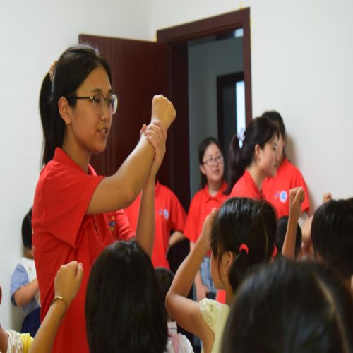 首先志愿者老师向小朋友们示范了“格挡冲拳”的系列动作,讲明了动作要理,然后从慢动作到连贯动作进行教学,志愿者老师进行分班操练,耐心的纠正小朋友们的动作,“手再低一点”,“手要用力握住拳头”,“脚要用力”。小朋友们斗志昂扬,像一名小战士一样顽强,勇敢,服从指挥。