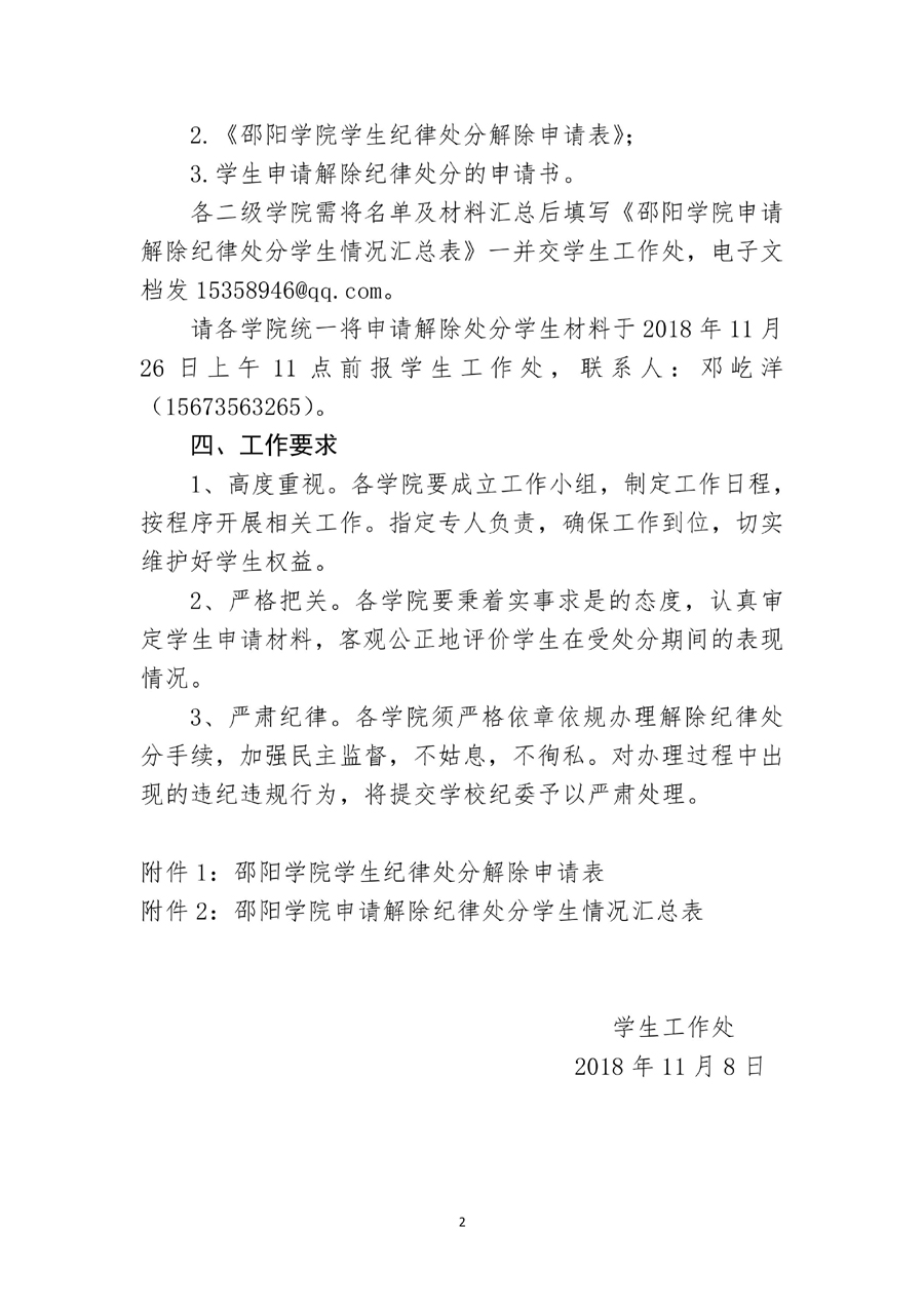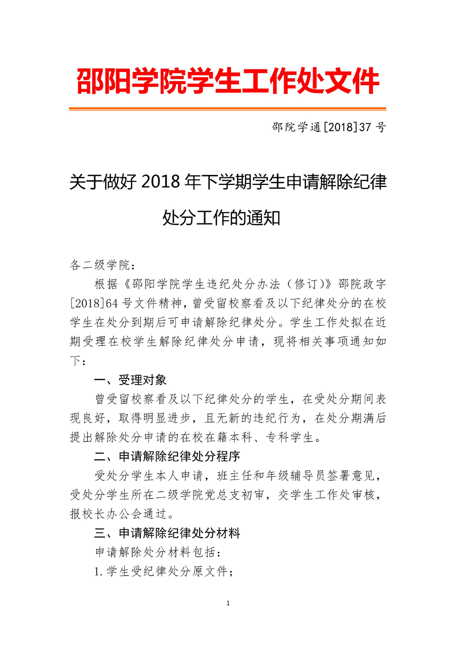 关于做好2018年下学期学生申请解除纪律处分工作的通知